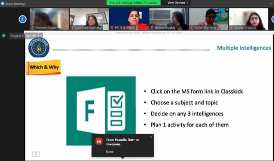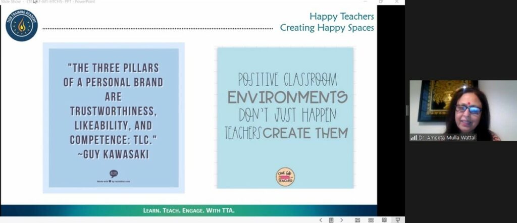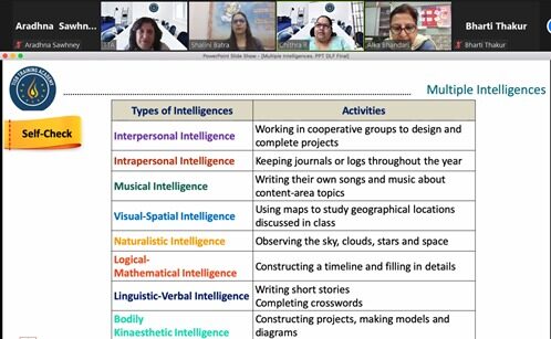 The workshops facilitate the teachers to help create happy classrooms, conduct collaborative activities, initiate Active learning in students and to create an environment for multiple intelligences.